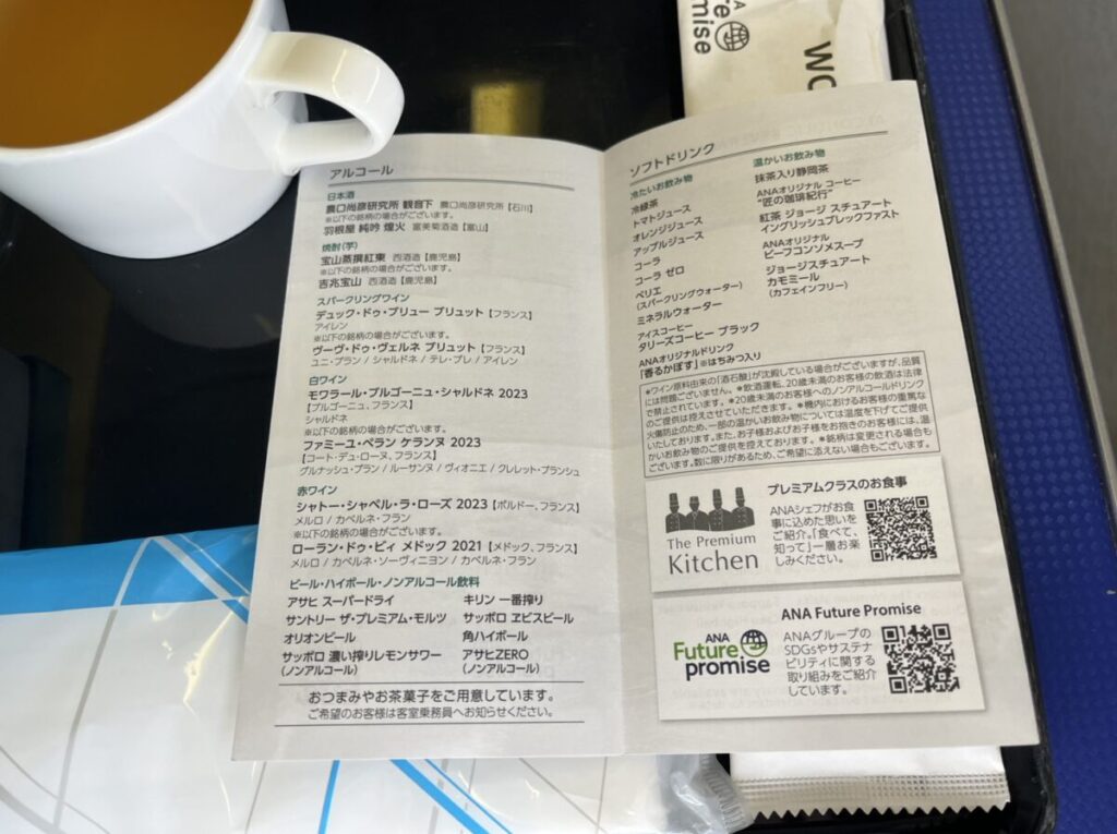 日本酒やシャンパンなど、魅力的なラインナップがズラリ。いつか機内での「朝酒」を楽しんでみたいものです……!