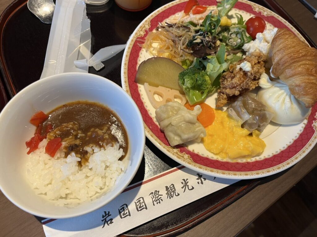 朝食は夕食とは別会場で、錦帯橋を眺めながらのバイキング形式でした。